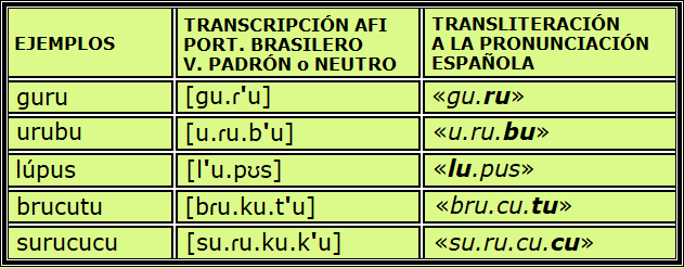 ➤Transcripción fonética según el Alfabeto Fonético Internacional (AFI) variante Português Brasileiro Neutro (PBNeutro): [u]